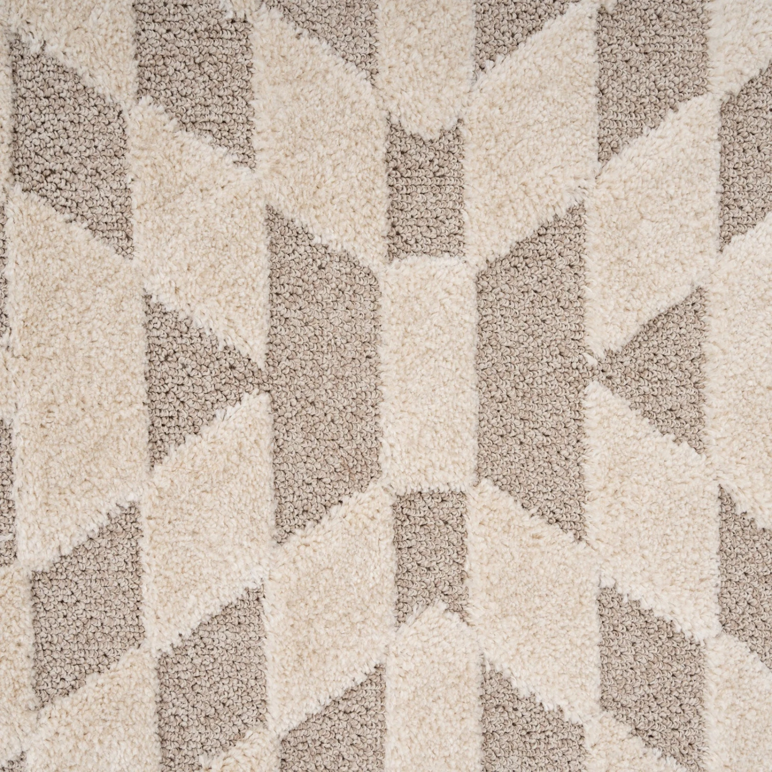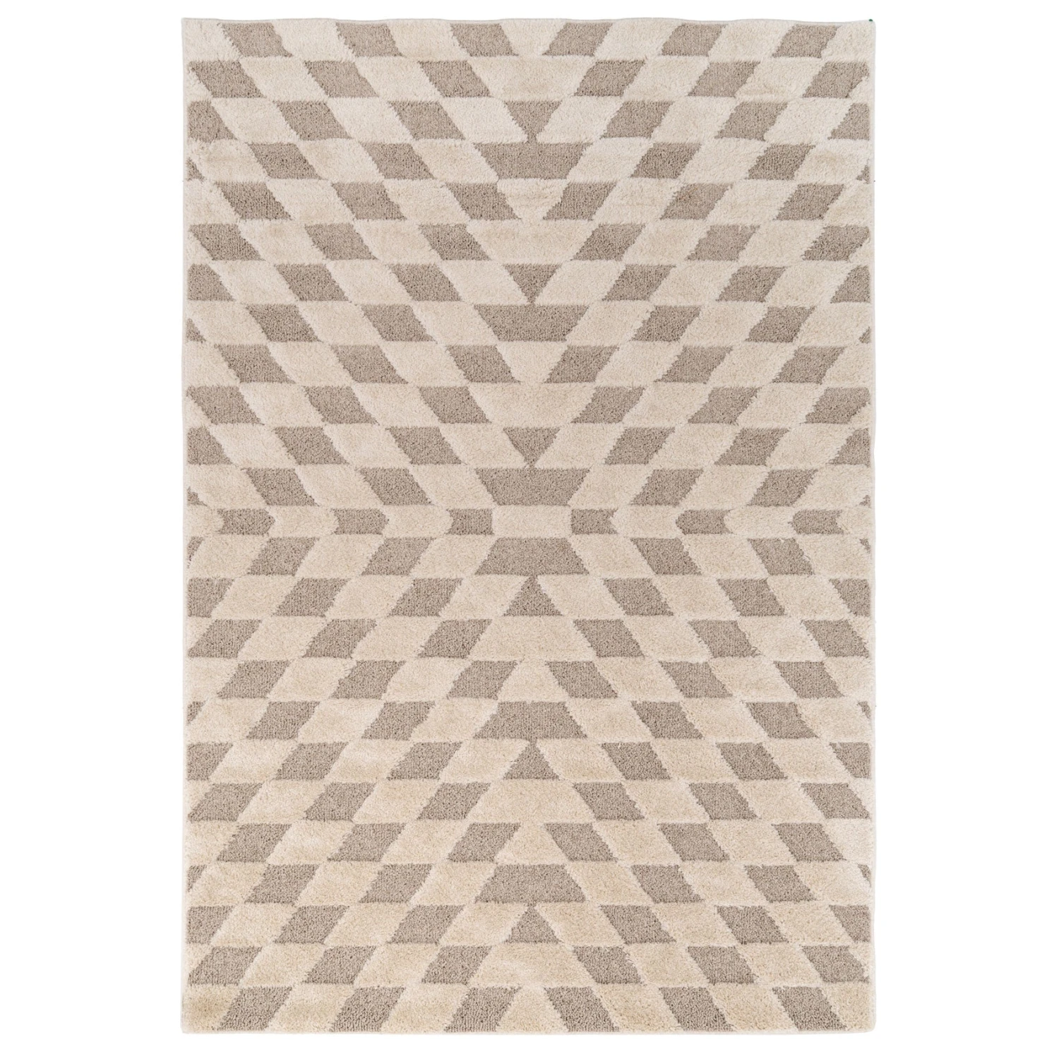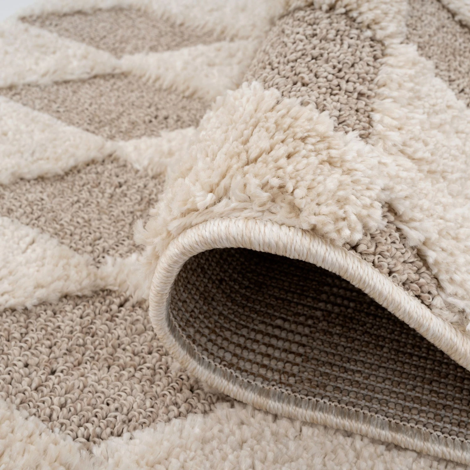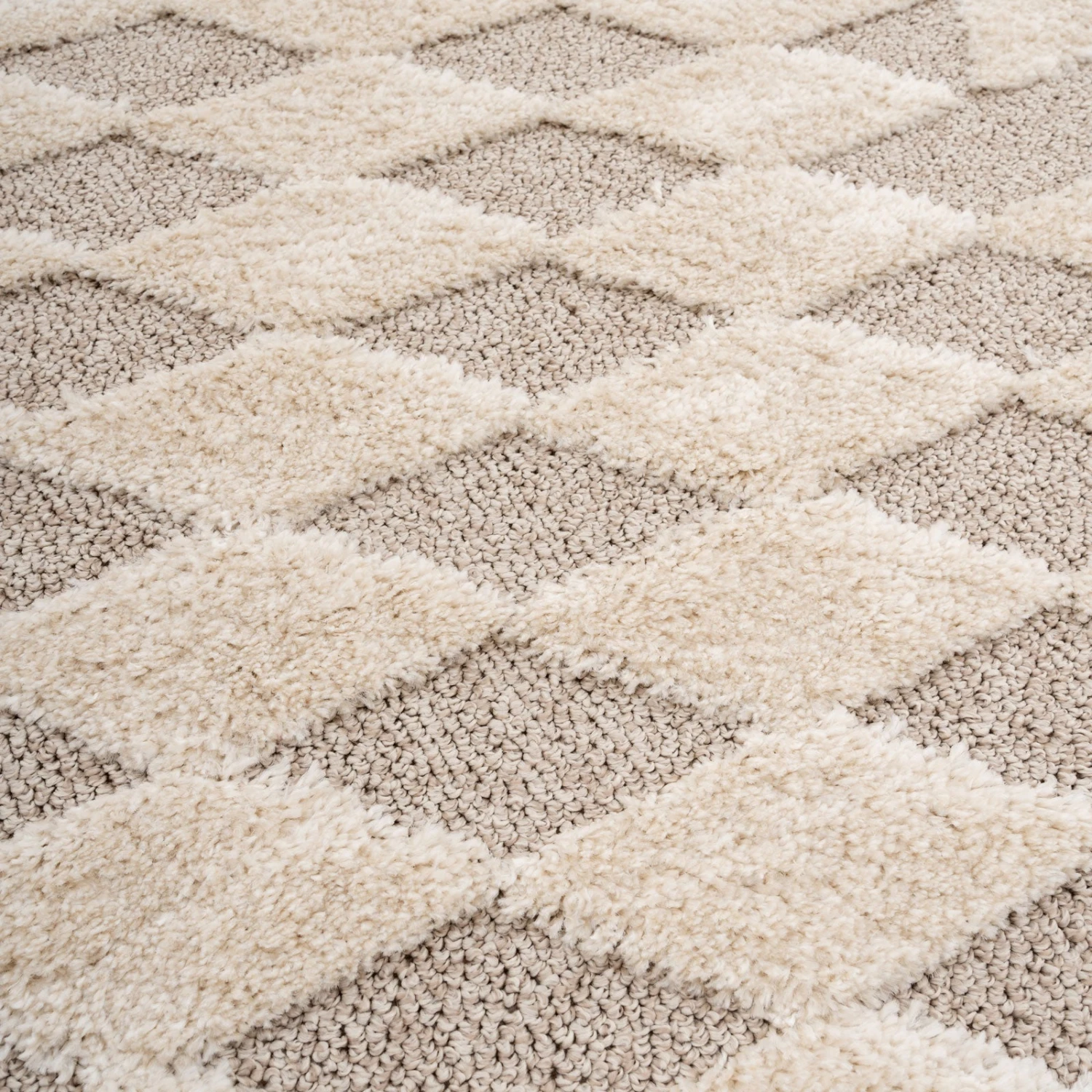Bring bohemian flair and clean geometrics to your space with this beautiful hi-lo looped pile rug. The perfect combination of beige and white in an intriguing rhombic pattern will add a unique, eye-catching touch that will spruce up any room. Get ready to get compliments!