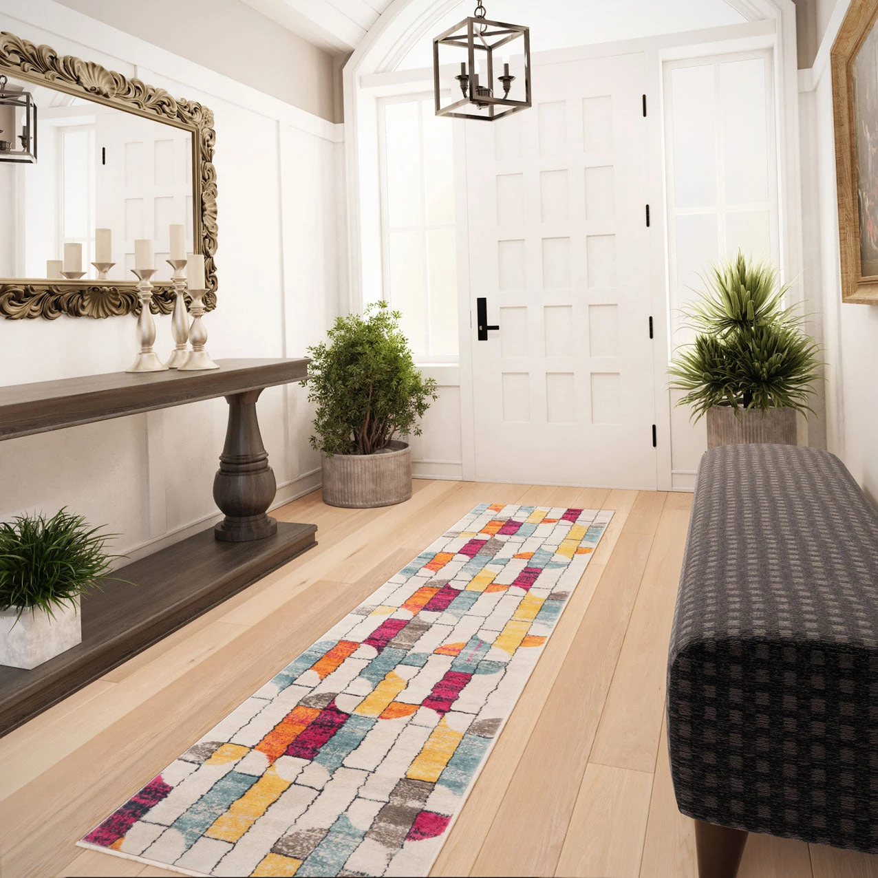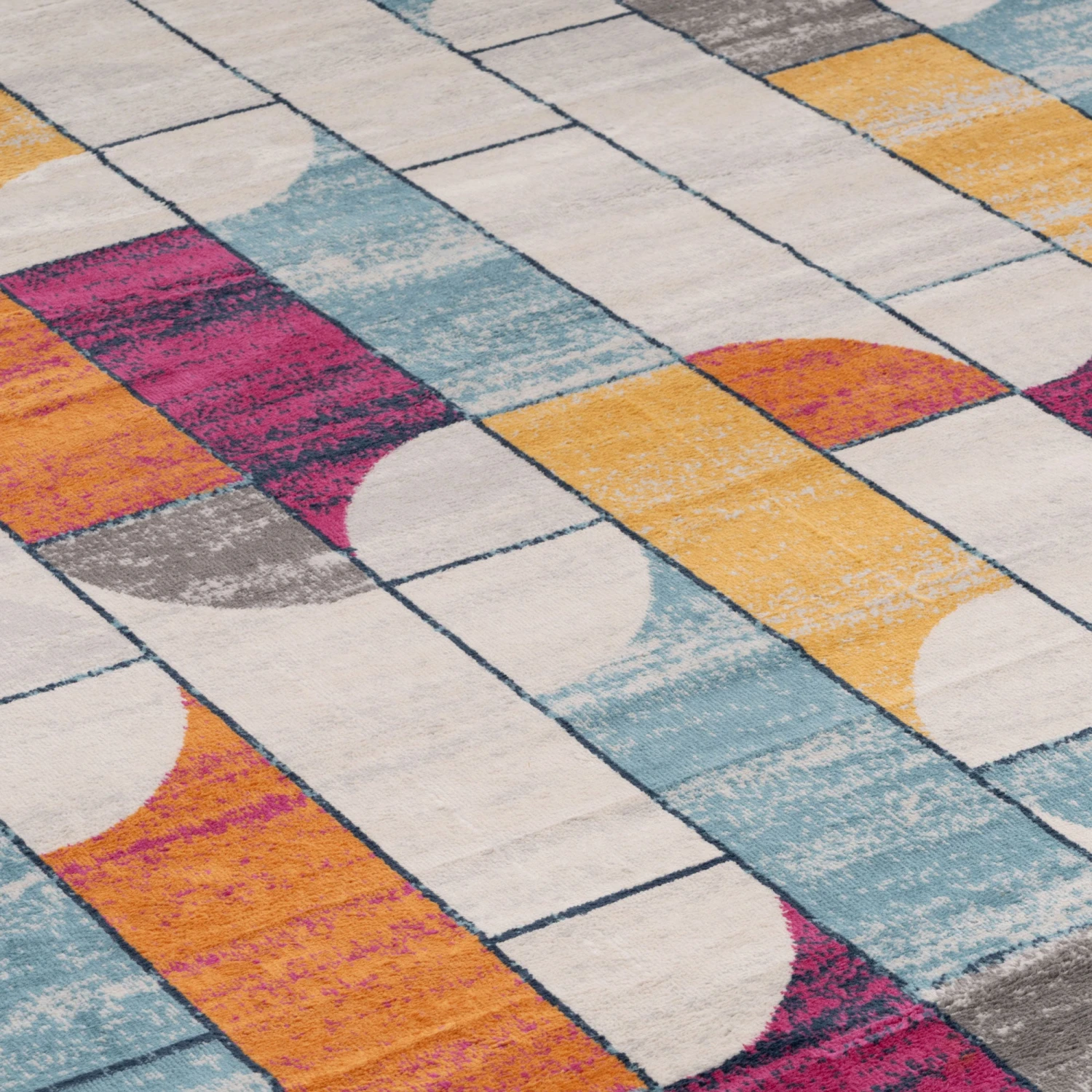Introducing Pescara, a stunning, colorful area rug that strikes the perfect balance between sophistication and playfulness. Its modern geometric design features unique wabi-sabi influences, making it the perfect decorative statement piece for any living space. Add effortless luxury and chic style to your home with Pescara.