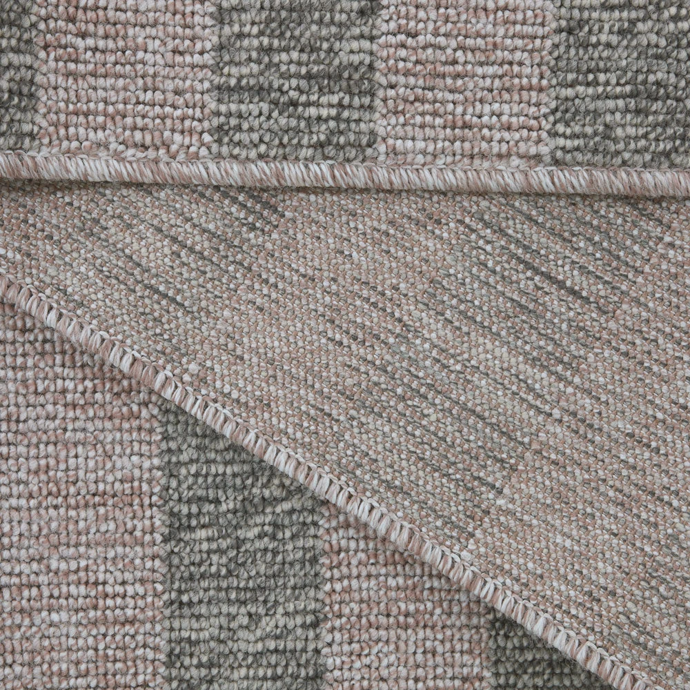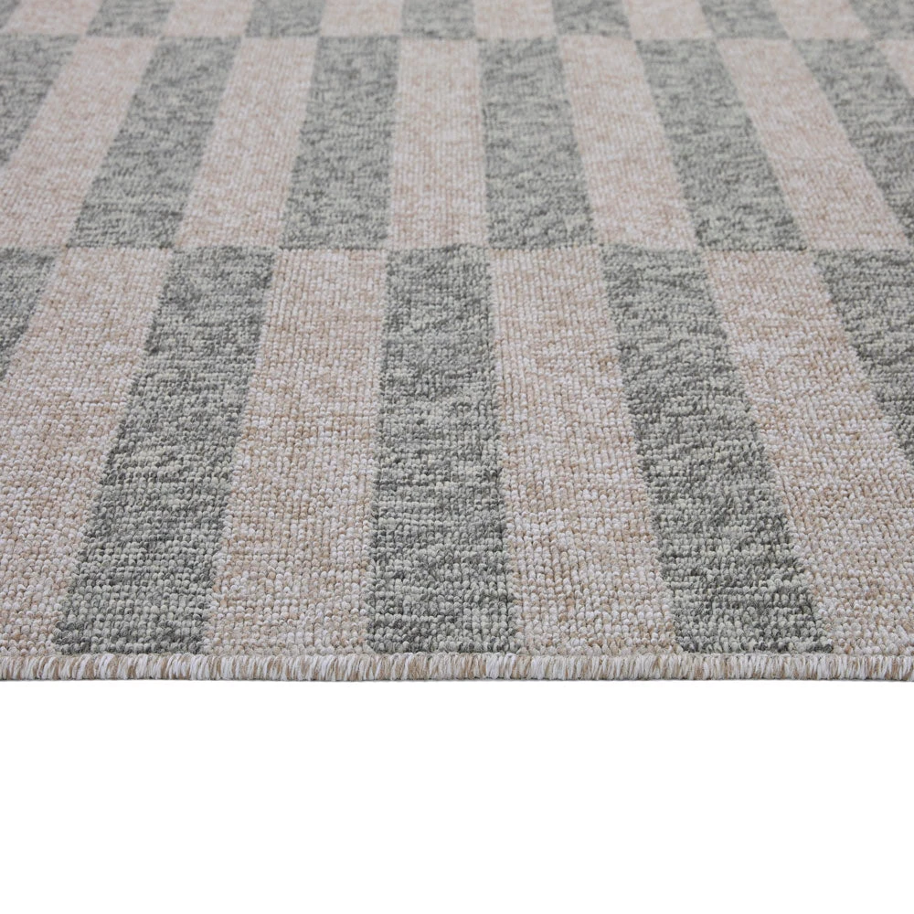 Souci blends a contemporary design with the rustic look of natural weaves. This rugs alternating cream and silver tones create a softer geometric design that would suit all style of outdoor furniture from classical wooden frames to modern corner units.