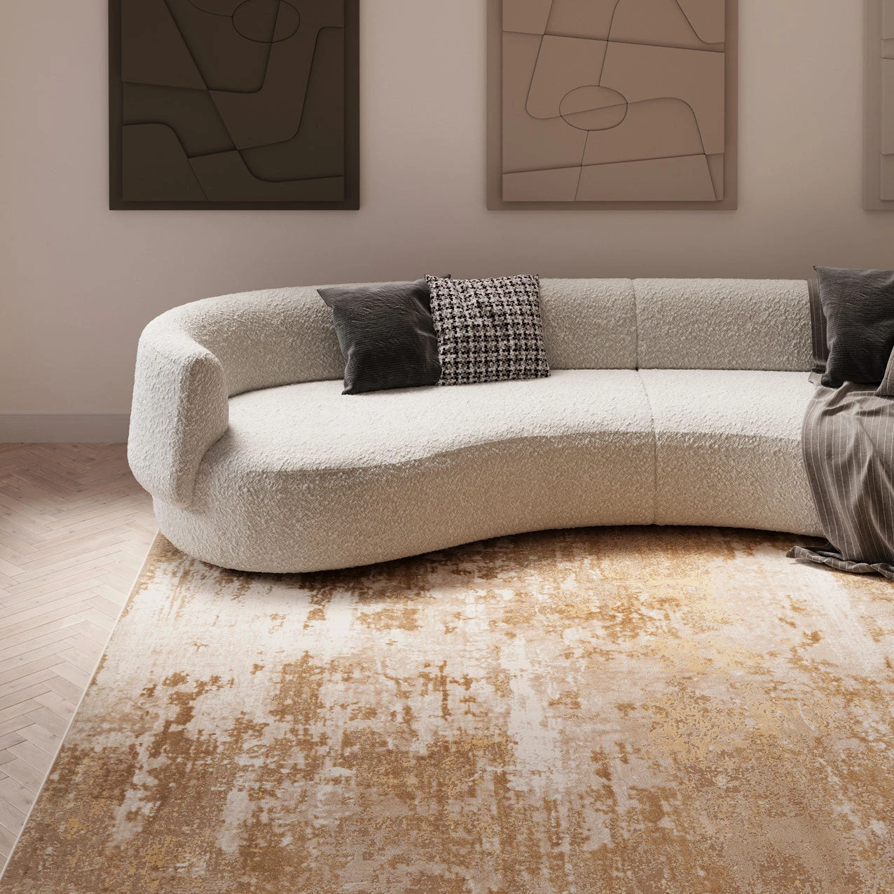 Immerse yourself in the captivating embrace of a vivid storm of neutral warmth, as the mesmerizing Ludlow Monro Beige rug design ignites your imagination and fuels your creativity. With its abstract distressed pattern, this remarkable rug exudes an air of sophisticated charm, inviting you to explore its depth and character.