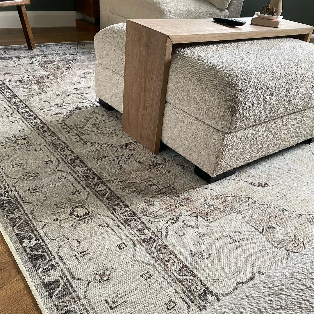 Beautify your home with this unique Washable Vintage Ivory Area Rug. This exquisite rug features a vintage pattern with a mix of soft ivory, faded taupe, and weathered grey for a subdued, yet stylish look. Its timeless design and soothing colors will elevate the style of any room.