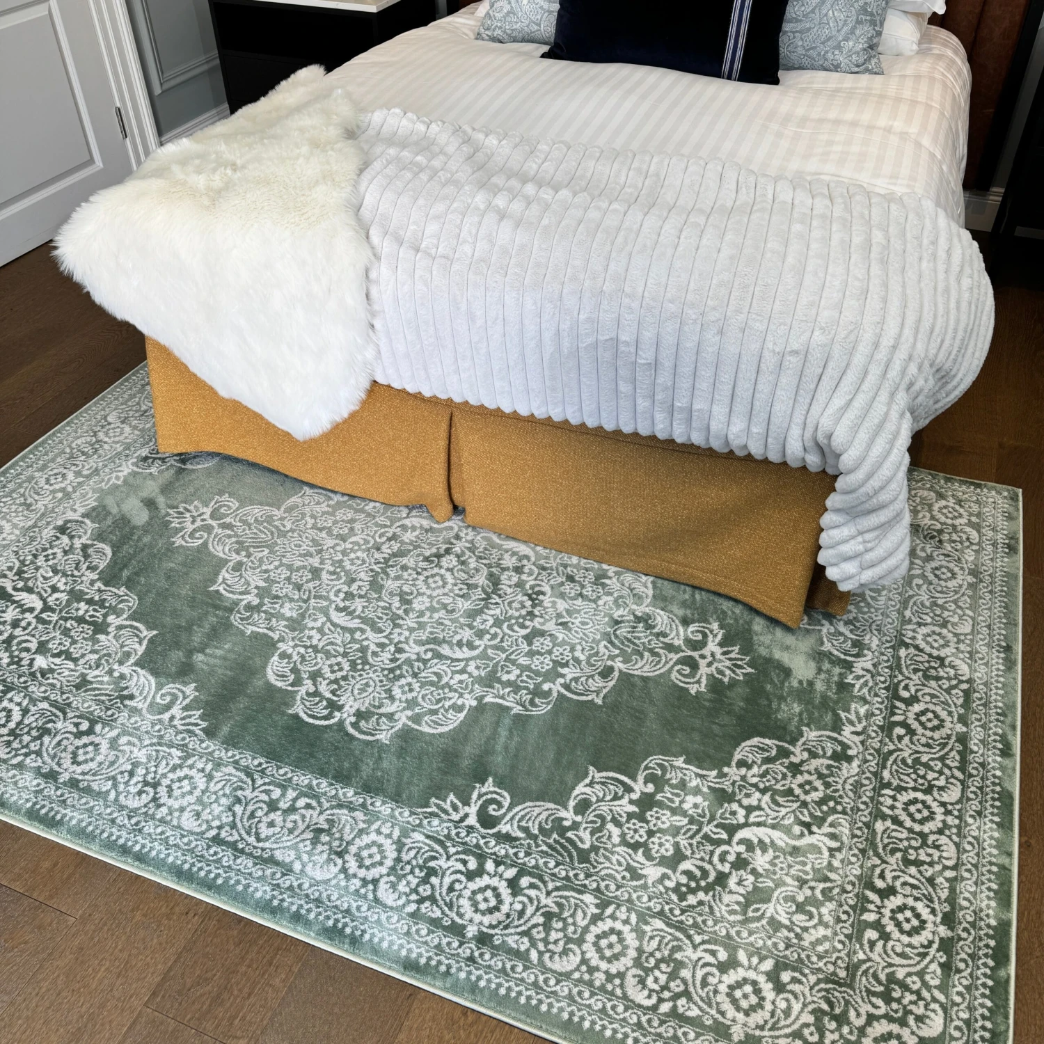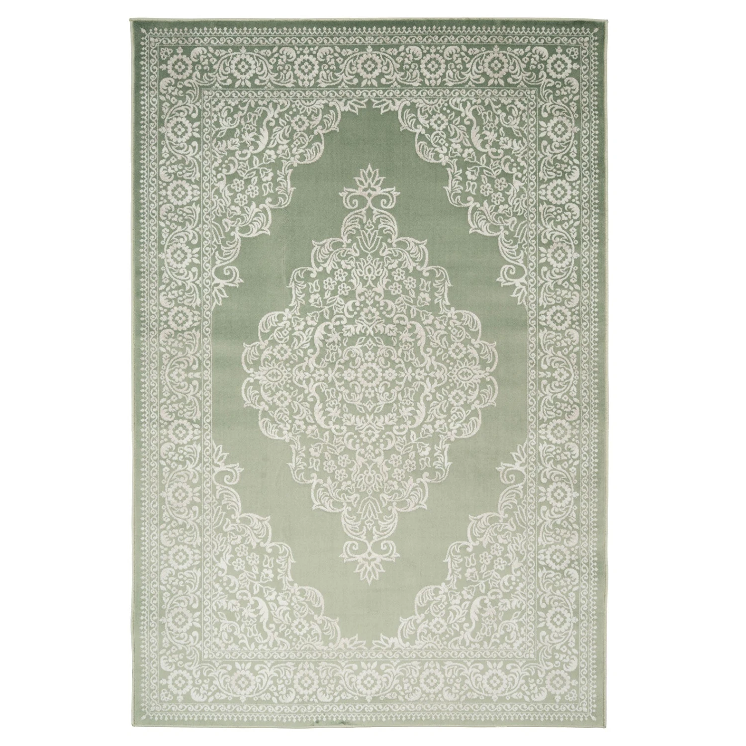 Add a timeless touch of sophistication to any room with the Jamila Green Ornate Medallion Rug. Its earthy green tone helps evoke a peaceful feeling, while its ornate central medallion and intricate border pattern bring classic elegance to your interiors.
