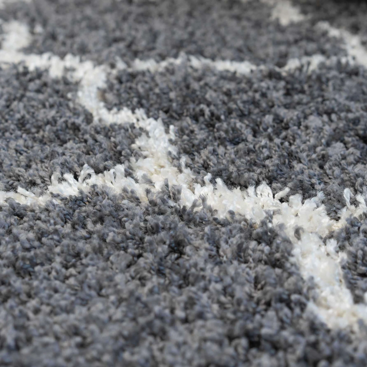 A subtle grey moroccan trellis design, it’s the ultimate on trend shaggy rug, with its trendy trellis pattern and soft piled shaggy pile its ideal to add style and warmth to a bedroom or living room.