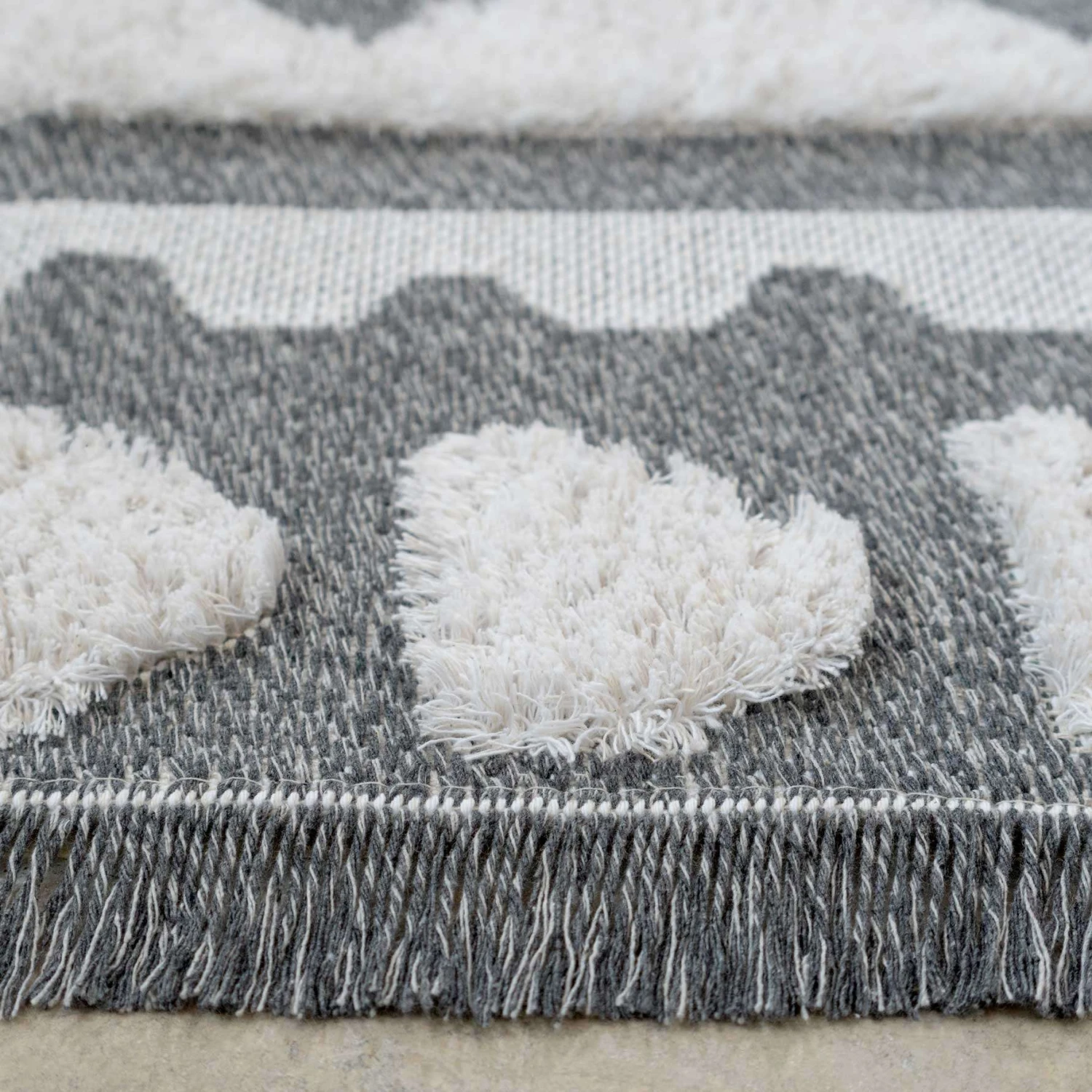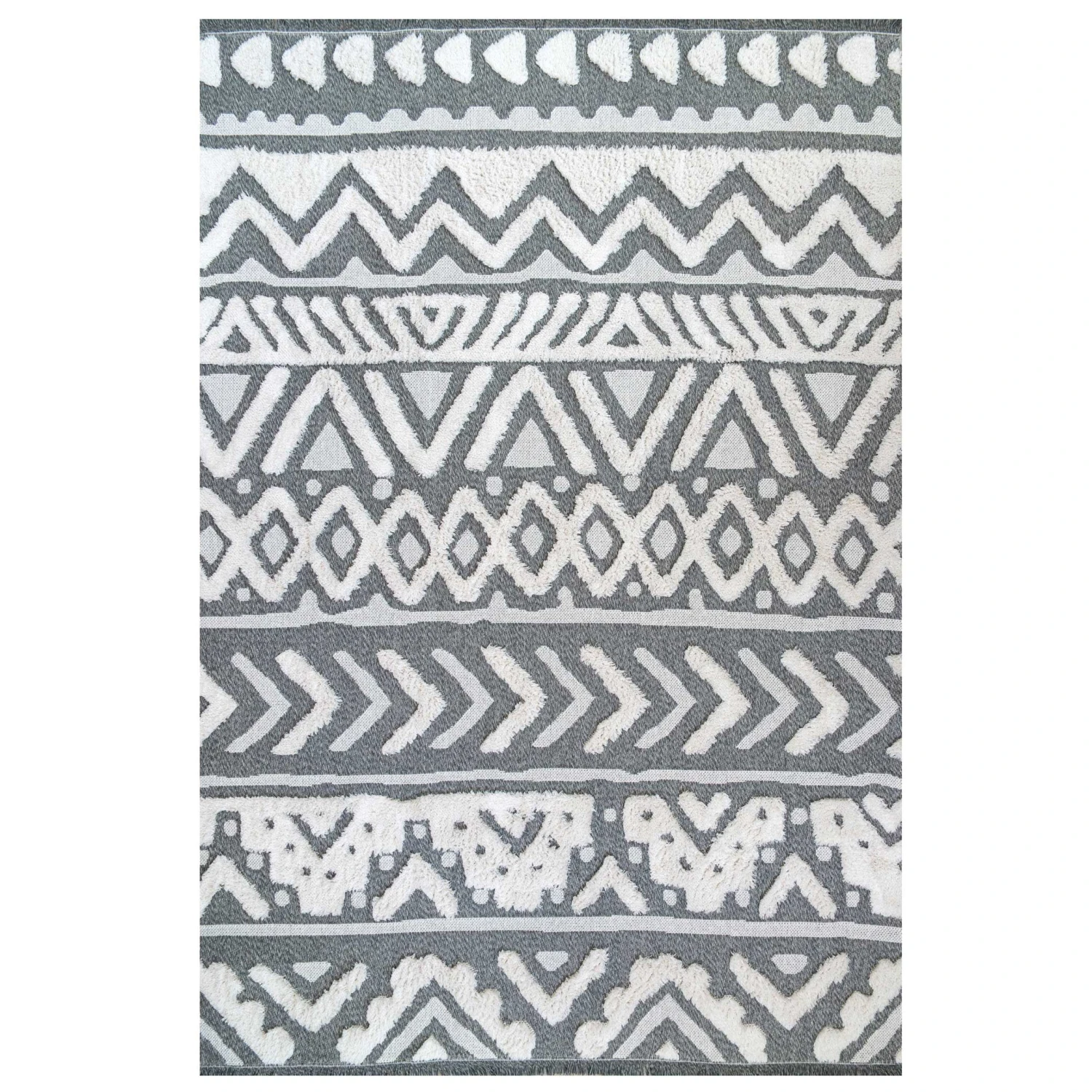 Rafati Grey | Rafati combines a linear tribal stripe in tufted 3D cotton contrasted in grey and cream tones.