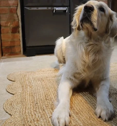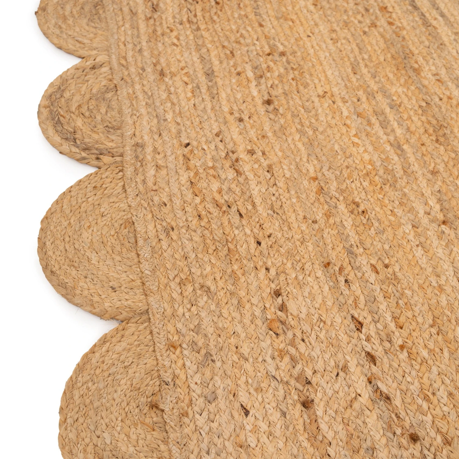 Caspers scalloped trim introduces a charming and distinctive look to a rustic- styled room. His natural beige and creamier tones creates a subtle contrast that highlights the edges and the rugs overall shape.