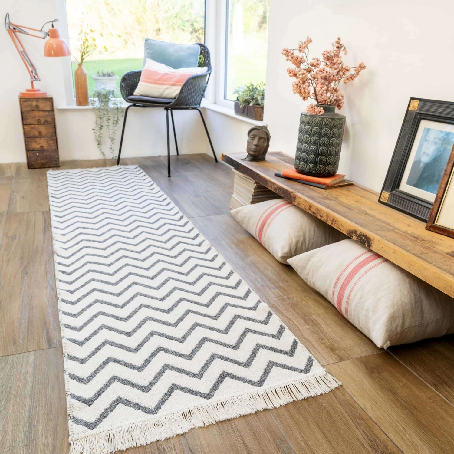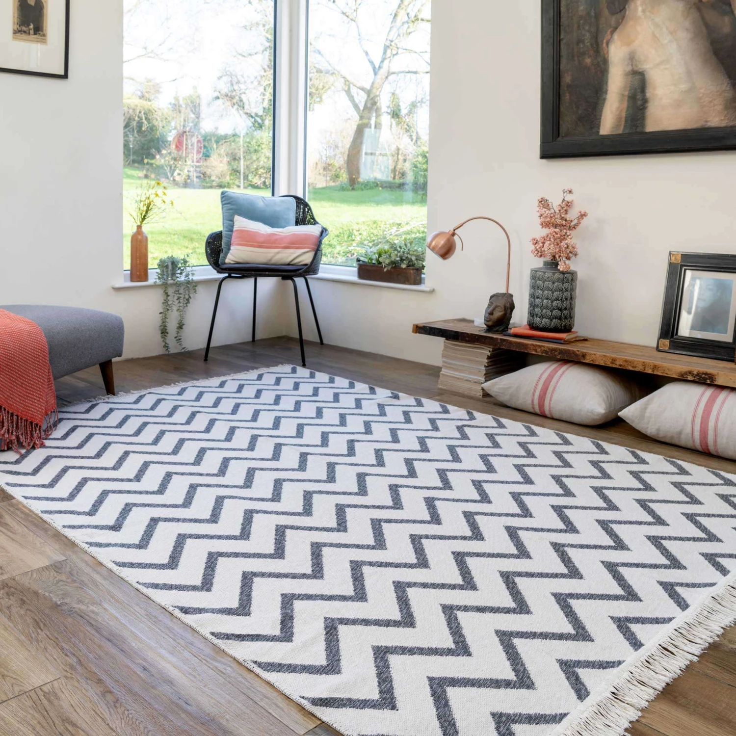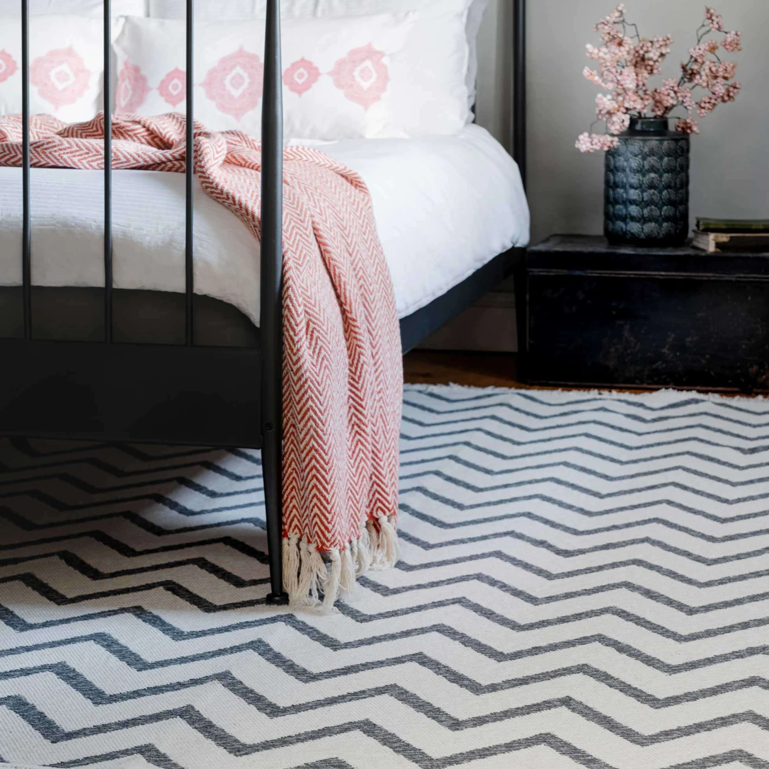 Introducing another sustainable range to our portfolio. Kyoto is a lightweight, fringed rug made from 100% recycled cotton. Employing two statement colours to maximum effect. Kyoto designs are fully reversible so you can change them up depending on your mood or space.