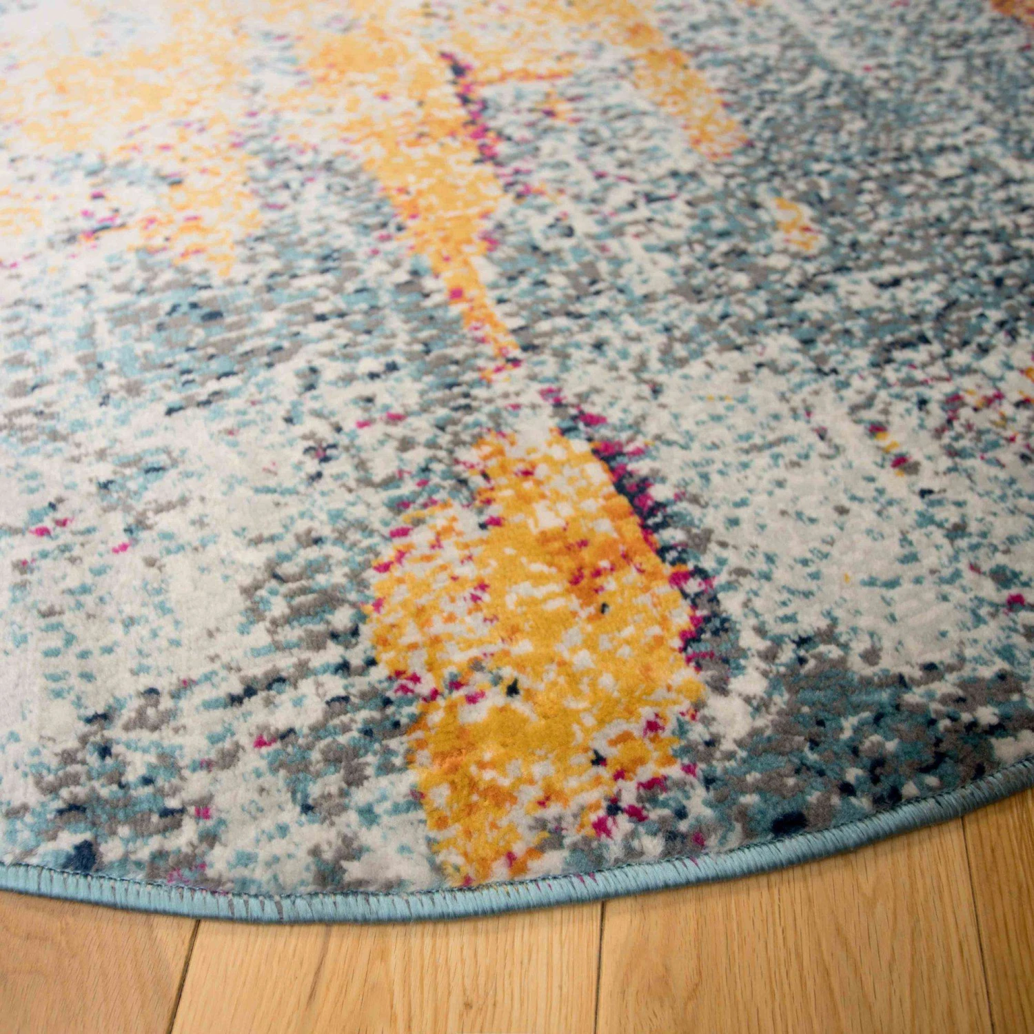 Mia is Inspired by the energetic hues of earth’s natural color palette, hues of light blue, teal, fushia, ochre, orange create an eye-catching rug which will add a splash of bohemian style to your room.