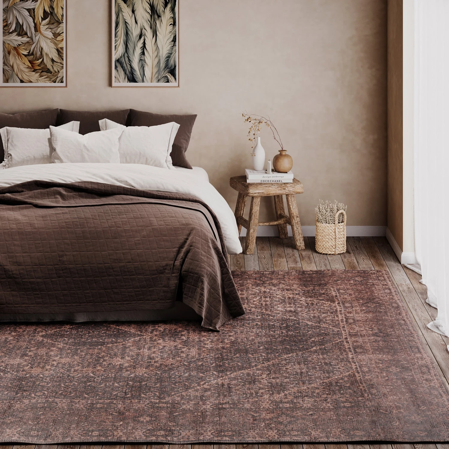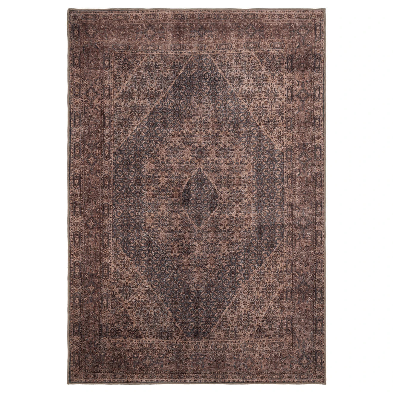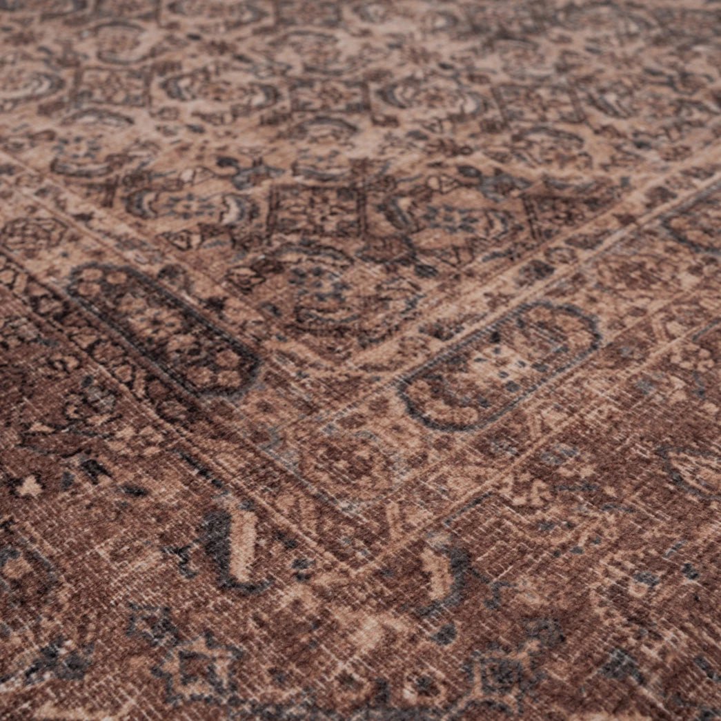 Mabel is effortlessly elegant yet refreshingly down to earth, like the guest who always knows just what to bring. Wrapped in soft beige, taupe, and brown tones, her central medallion and intricate borders whisper timeless charm, while a delicate distressed finish gives her that well-loved, heirloom feel.