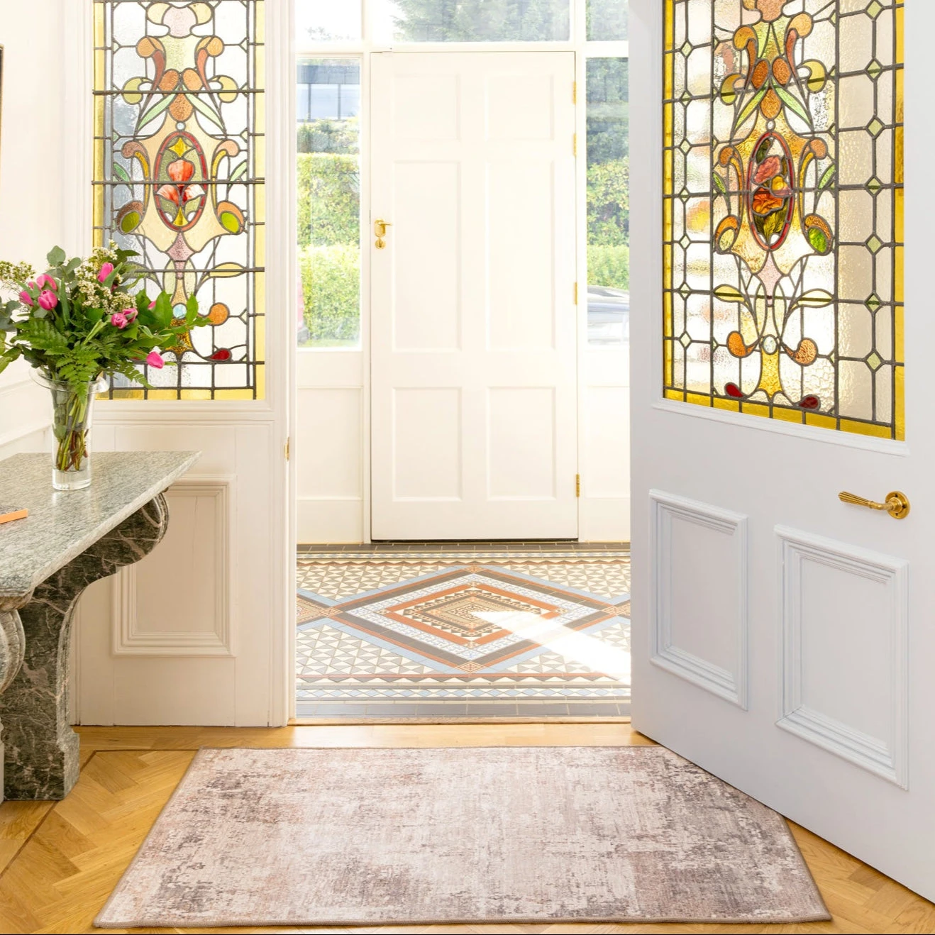 Ernest comes across as serious,calm, composed, a little reserved, but beneath the surface, he’s all warmth and quiet comfort. Like a familiar coffee shop corner or a well worn book, there’s something about him that pulls you in. This rugs modern abstract design in greige tones, with soft beige highlights, feels effortlessly soothing, understated yet inviting in a bathroom.