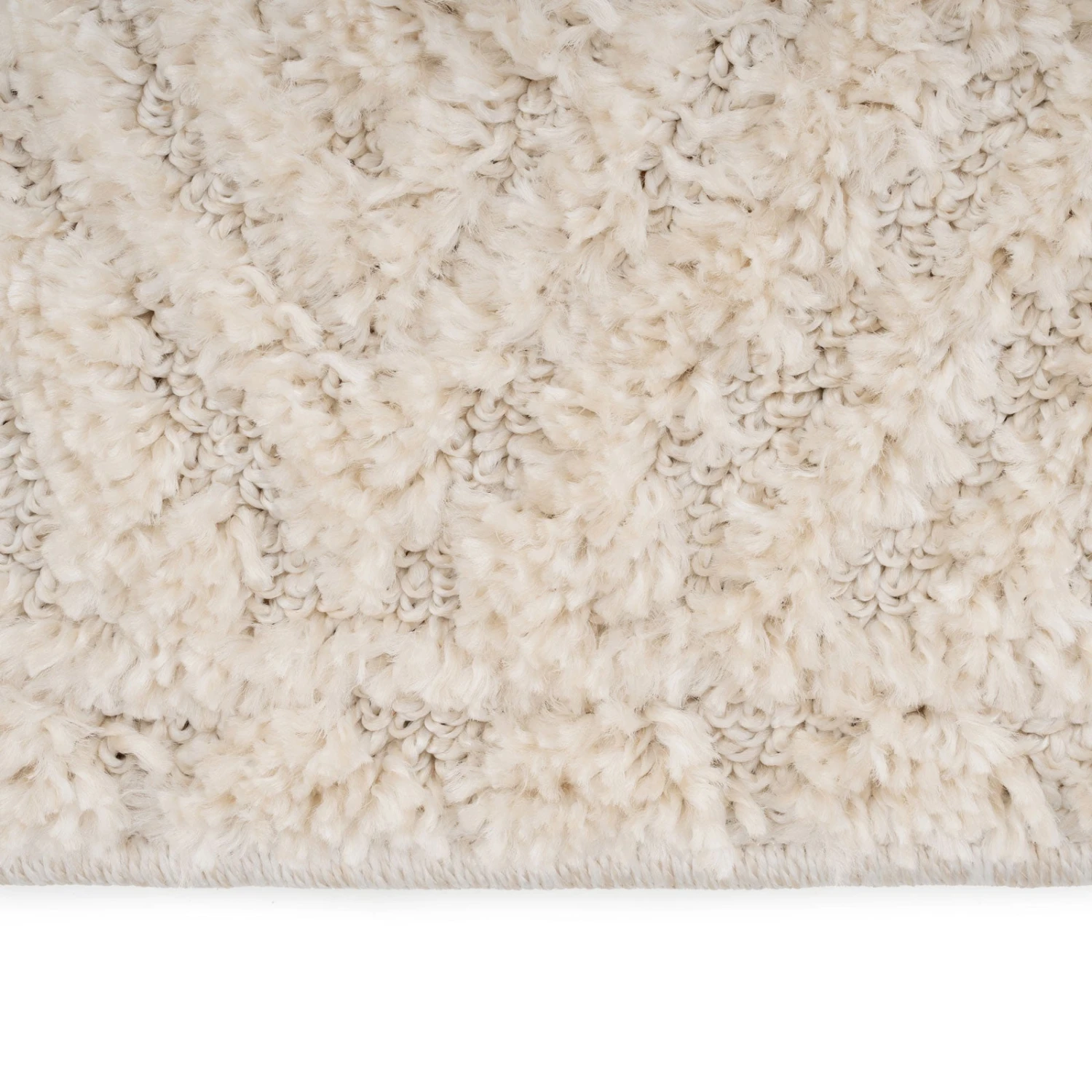 This Warm White Tufted Diamond Rug – Elino is a real showstopper! With its geometric diamond design interwoven in a hi lo loop pile, this rug exudes style and comfort. Add a touch of elegance to any space with this eye-catching and soft rug. Live luxuriously!