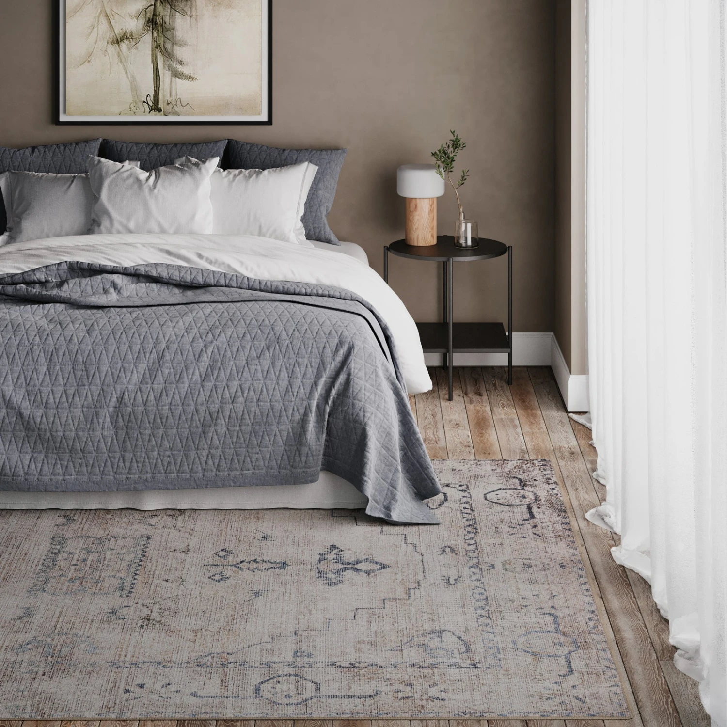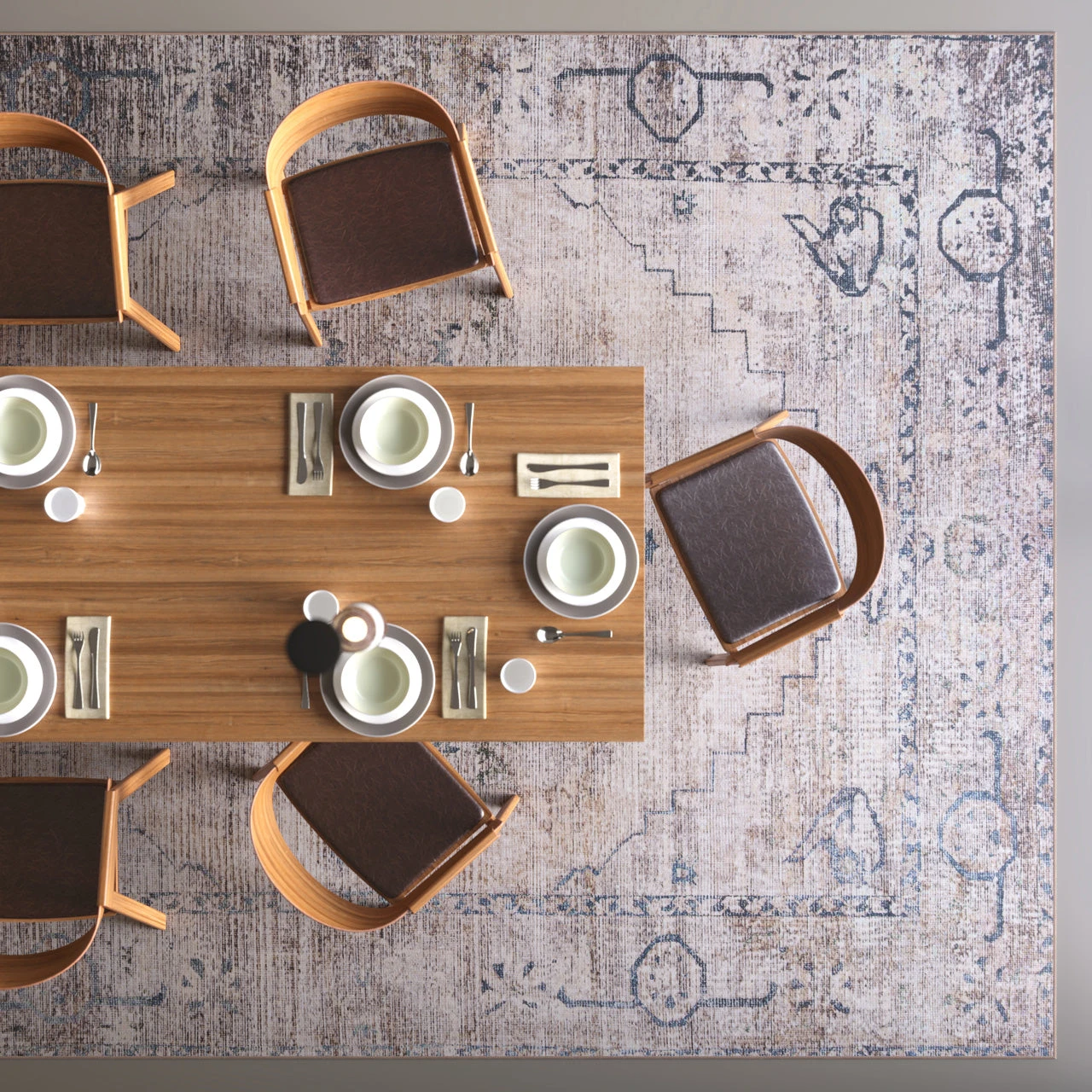 Rooted in the ancient artistry of Berber and Gabbeh rugs, Roam’s tribal symbols are more than decoration. Each motif tells a story, of journeys taken, of hope held, of prosperity ahead. With his gentle blue detailing resting on a cool greige base, Roam slips seamlessly into pared-back interiors with a hint of wanderlust.