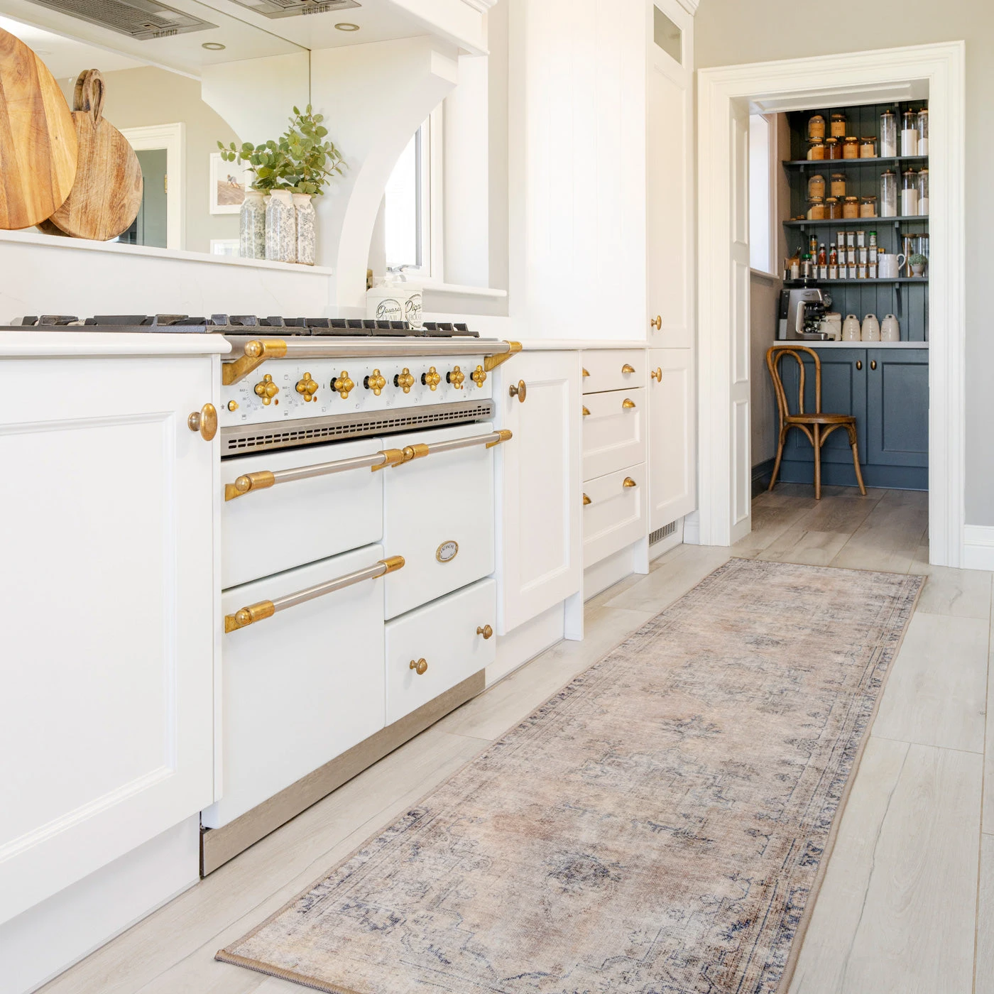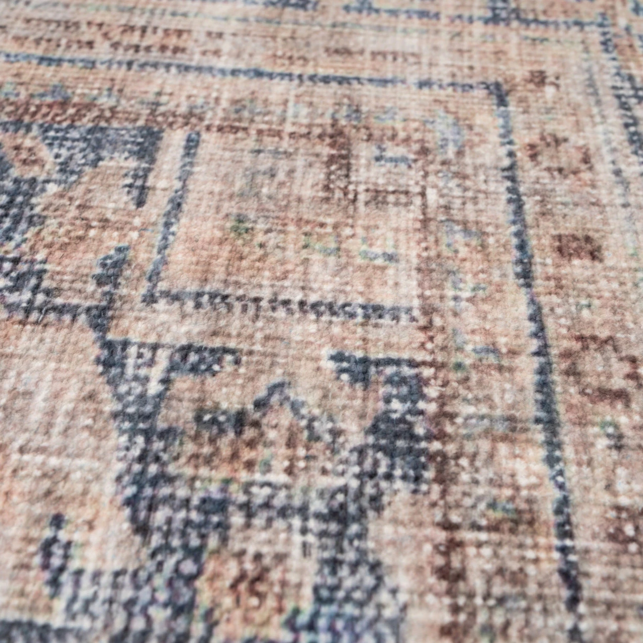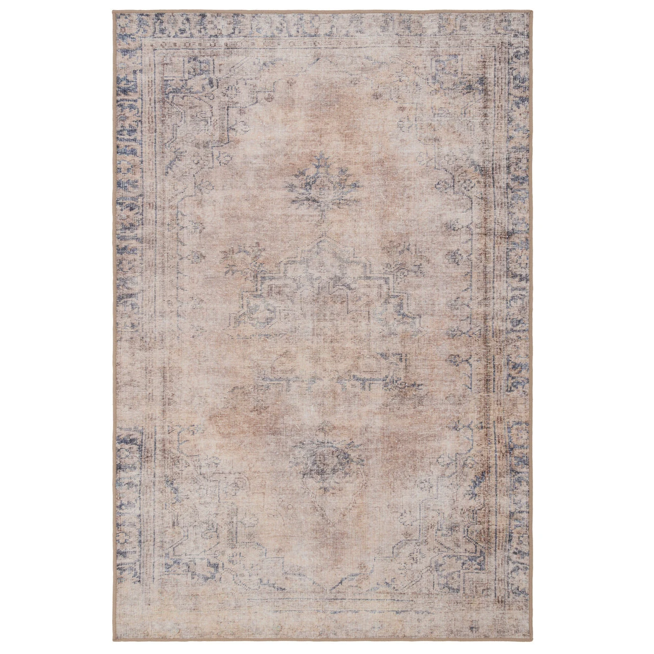 Woven in a subtle Kashan design, Wander blends soft terra and beiges with grounding deep blue in a palette that feels sun warmed and soulful. Her distressed finish adding that perfectly imperfect charm.