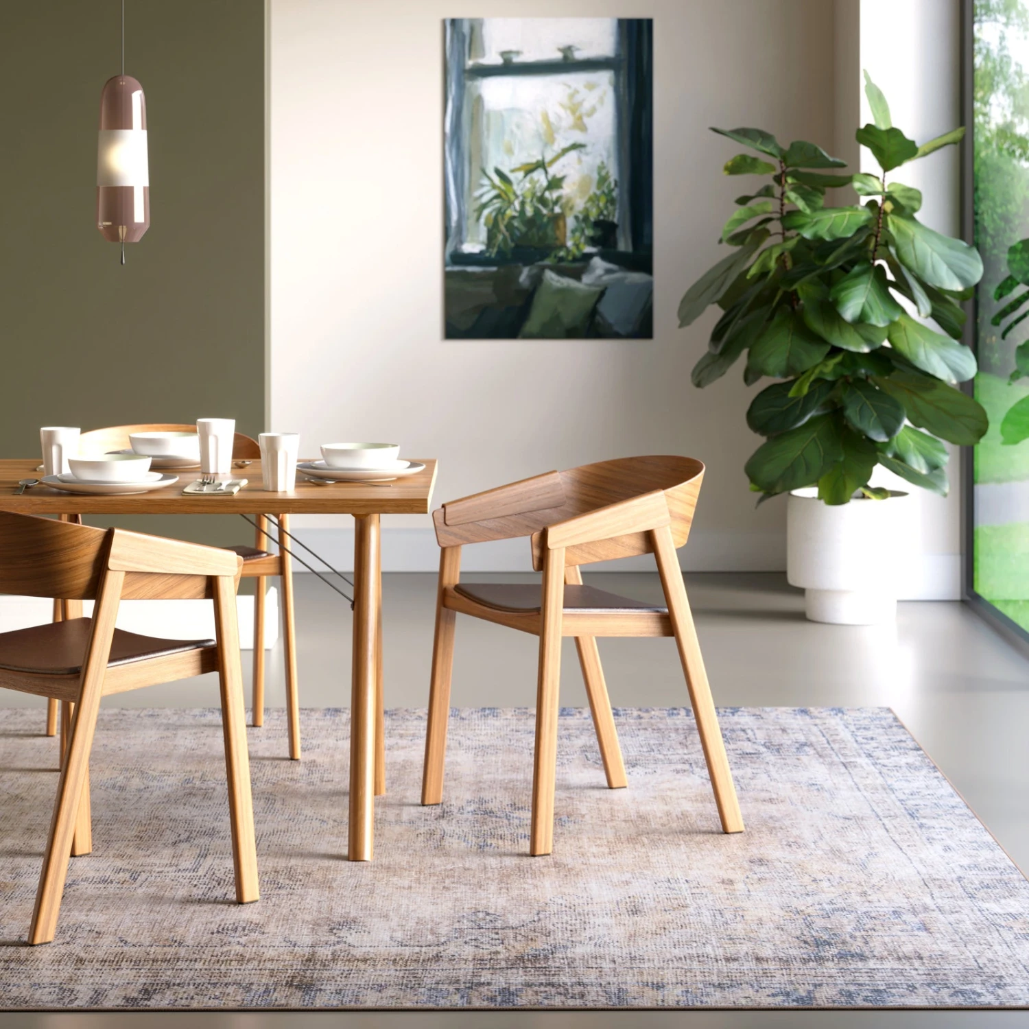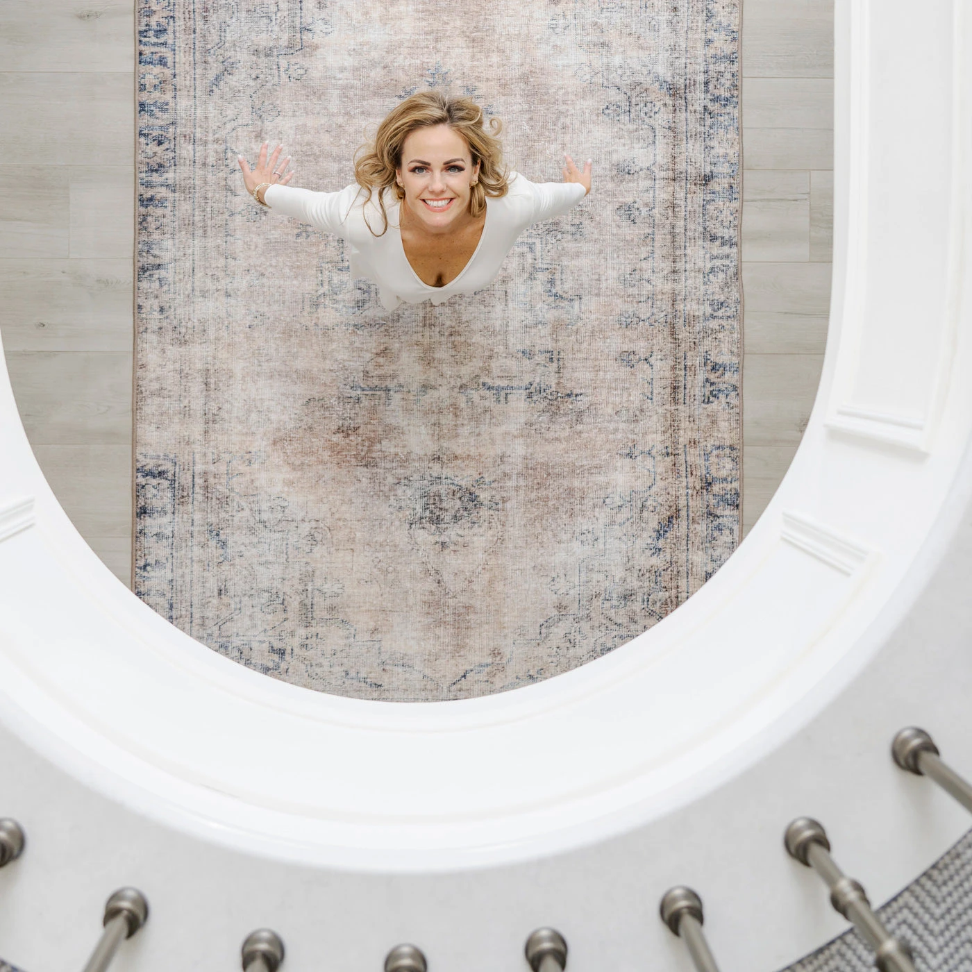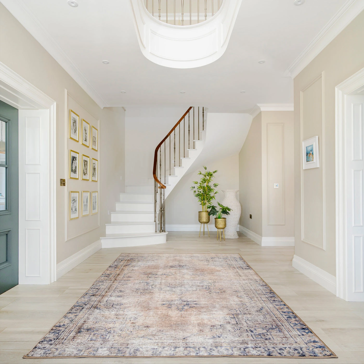 Woven in a subtle Kashan design, Wander blends soft terra and beiges with grounding deep blue in a palette that feels sun warmed and soulful. Her distressed finish adding that perfectly imperfect charm.